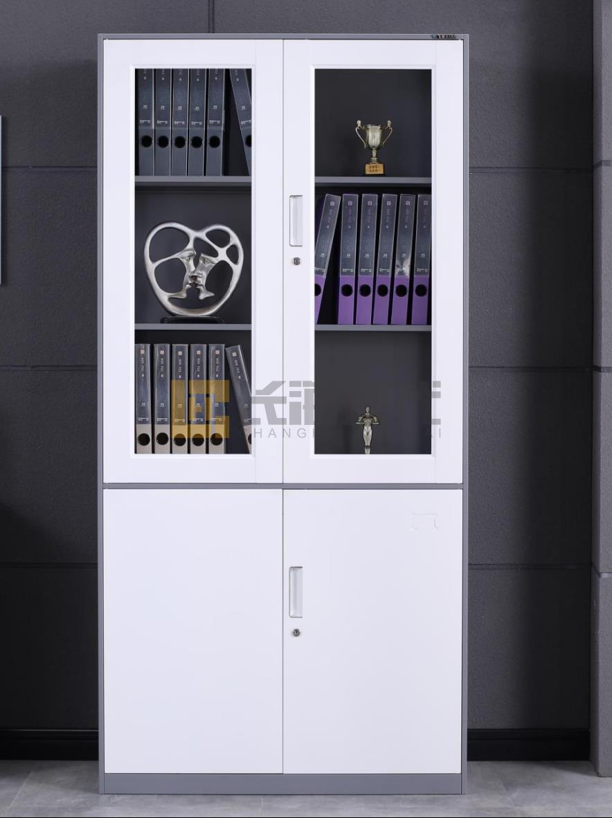 開啟方式:四開門設計(上下雙層) 上門板:帶鋼化玻璃視窗 下門板:全鋼實門結構 安全配置:上下柜門均配置鎖具 |